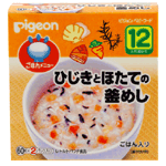 【超特価】ピジョンベビーフード ごはんメニュー【ひじきとほたての釜めし】 (60g×2パック) [12ヶ月頃?] 【all10p10】 【gue5t65】価格: 248円レビュー評価: 5.0 レビュー数:1 名 称ピジョンベビーフード ひじきとほたての釜めし ごはん入り 【12ヵ月頃から】 内容量 120g(60g×2パック) 特 徴 ごはんメニュー ●赤ちゃんのかむ力の発達に合わせて、具材の大きさや固さを考えたベビーフードです。 ●ひじき・ほたて・野菜を加え、風味豊かなだしで炊き上げた釜飯です。 ●カップ容器入りで、忙しいときやお出かけのときにも便利です。 ●着色料、保存料、香料は使用しておりません。 ご使用法 ふたシールをはがし、軽くかきまぜてそのままお召し上がりいただけます。 【お湯で温める場合】 ふたシールをはがさずに容器のままお湯に2?3分つけて温めて下さい。その際、沸騰はさせないで下さ |